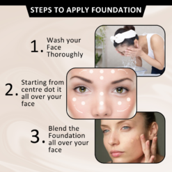 Use a brush (dab & buff), damp sponge (dab & blend), or clean fingers (warm & pat) for application